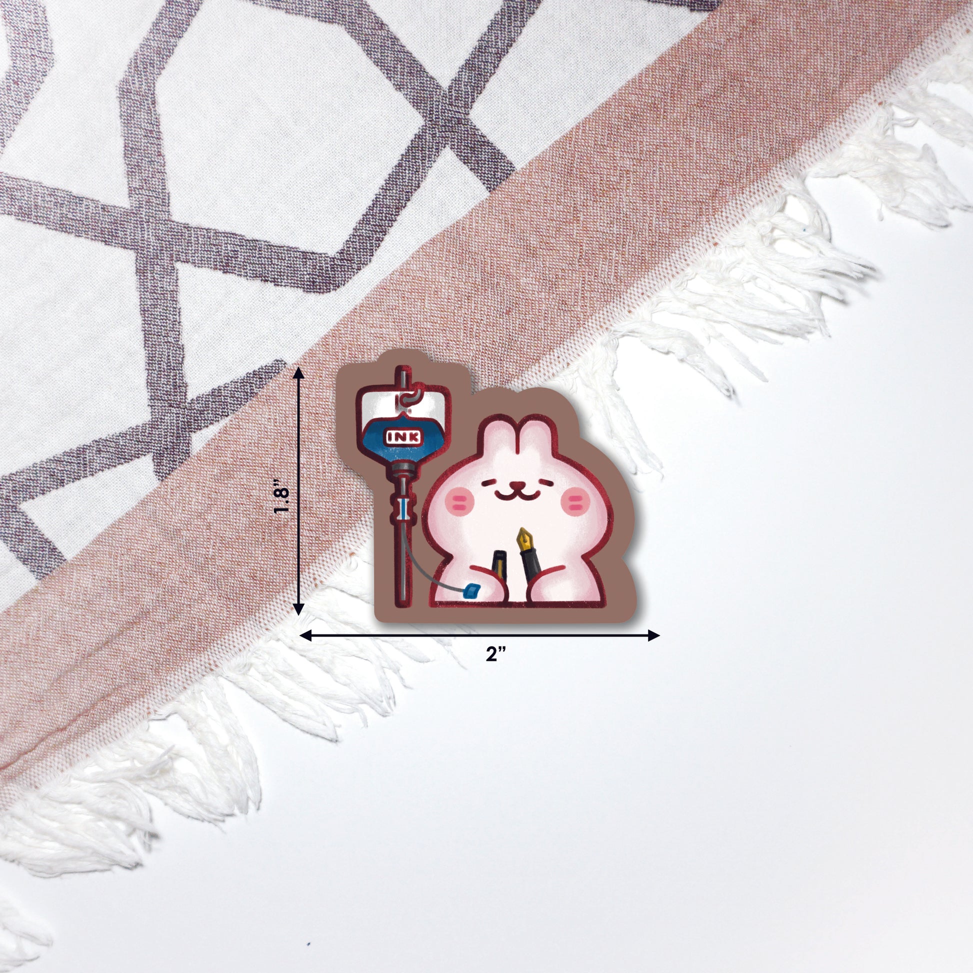 The sticker is printed on material that is water resistant covered with a thin layer of laminate that gives it a slight gloss and protects the ink from water.