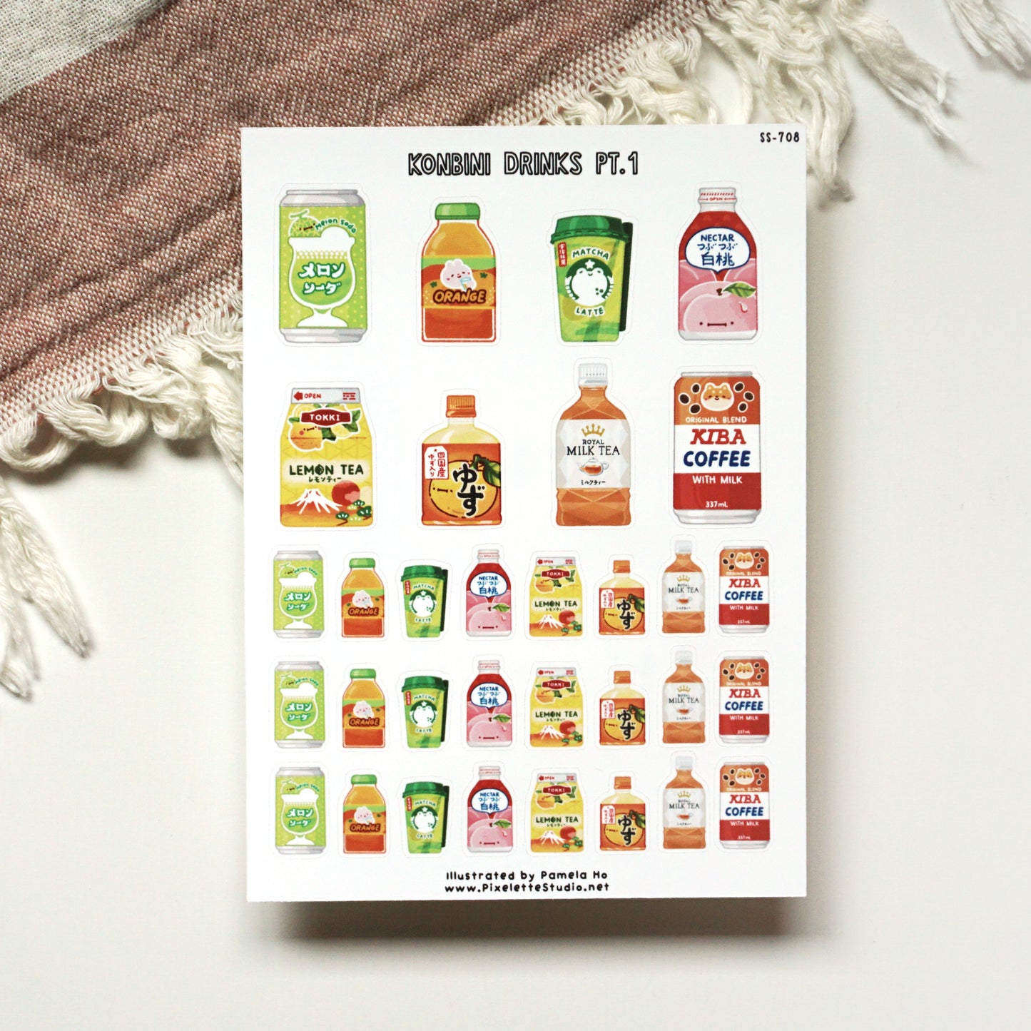 Get the Konbini drinks bundle! This includes 1 art print, 1 sticker sheet and 1 sticker pack.